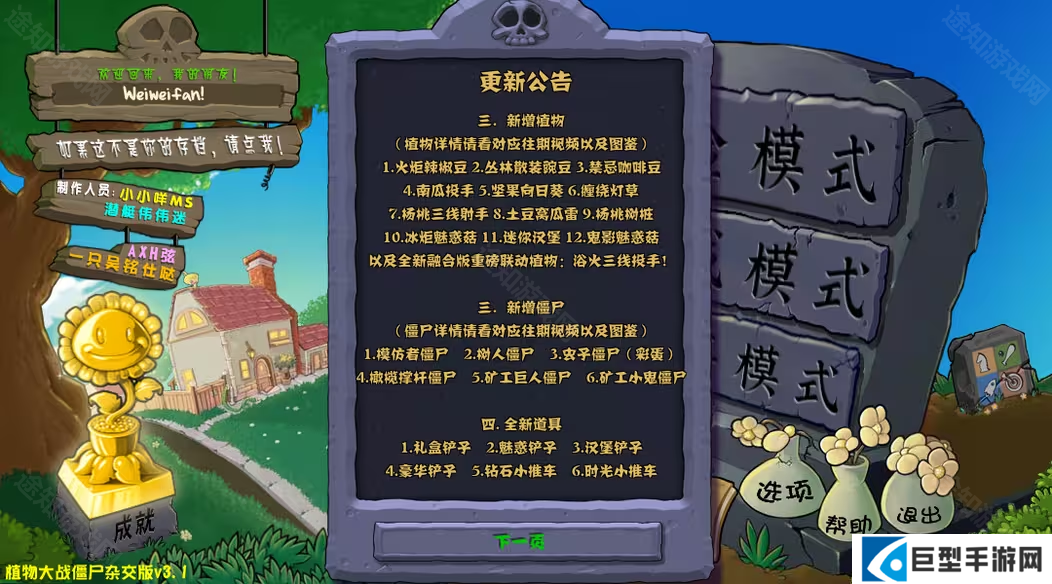 本站下载地址:植物大战僵尸杂交版3.1版本
