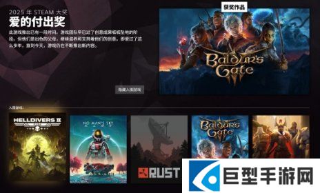 昨天,由粉丝投票产生的Steam 2025大奖名单揭晓,《丝之歌》获年度最佳游戏,《超英派遣中心》获“杰出剧情游戏奖”,而《博德之门3》击败《无人深空》《绝地潜兵2》《DOTA2》等游戏拿下“爱的付出奖”。